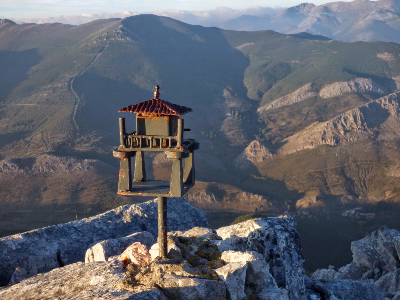 Las vistas de la cima veladas por un sol intenso que busca abandonar el escenario. A contraluz, como lo que resta de recorrido hasta el Cueto Cabanas y siempre jugueteando con la arista.